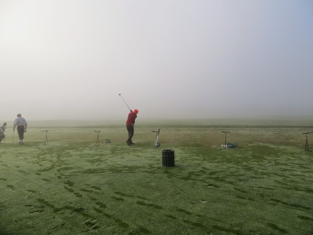 The course was busy already and people were actually going out off the first tee despite the fog. We practiced chips and putts on the green as the sun tried in vain to burn off the fog. The practice green was very fast and undulating. This proved to be a good test of the conditions that would appear out on the course.