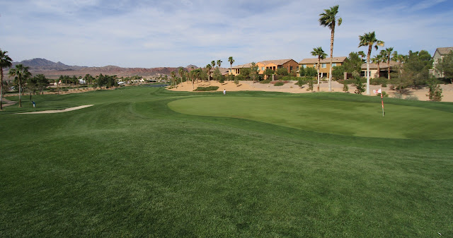 The look of this hole sets the tone for the rest of the course. While I was playing I couldn't help but think that this course feels a lot like TPC Scottsdale. What I mean by that is the expanse of green pretty much everywhere with the exception of the highly manicured "desert" zones that frame the holes and hold up the traditional tree hazards.